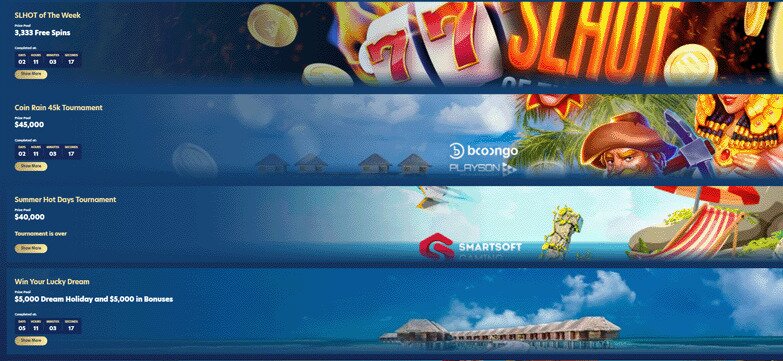 LuckyDreams offers daily and weekly pokies tournaments awarding cash prizes and free spins. Let’s look at some of the tournaments available: